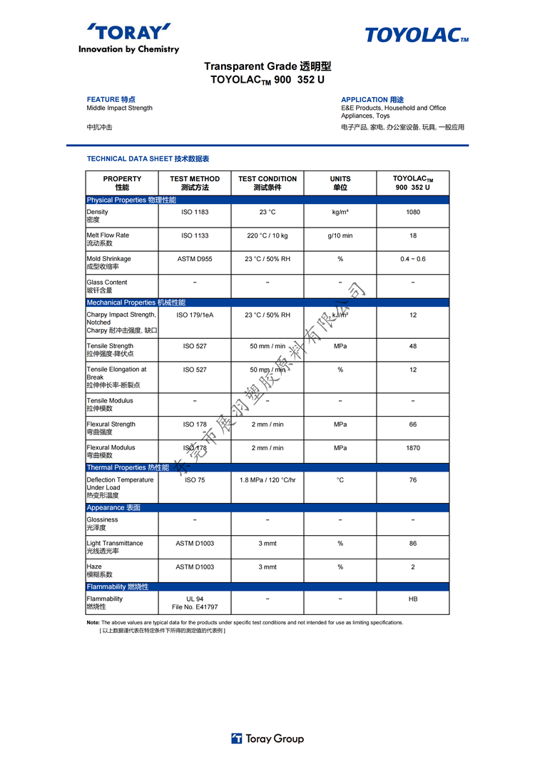 透明ABS 東麗 MABS 900 352 U 中抗沖擊 電子產(chǎn)品 辦公室設(shè)備 玩具應用