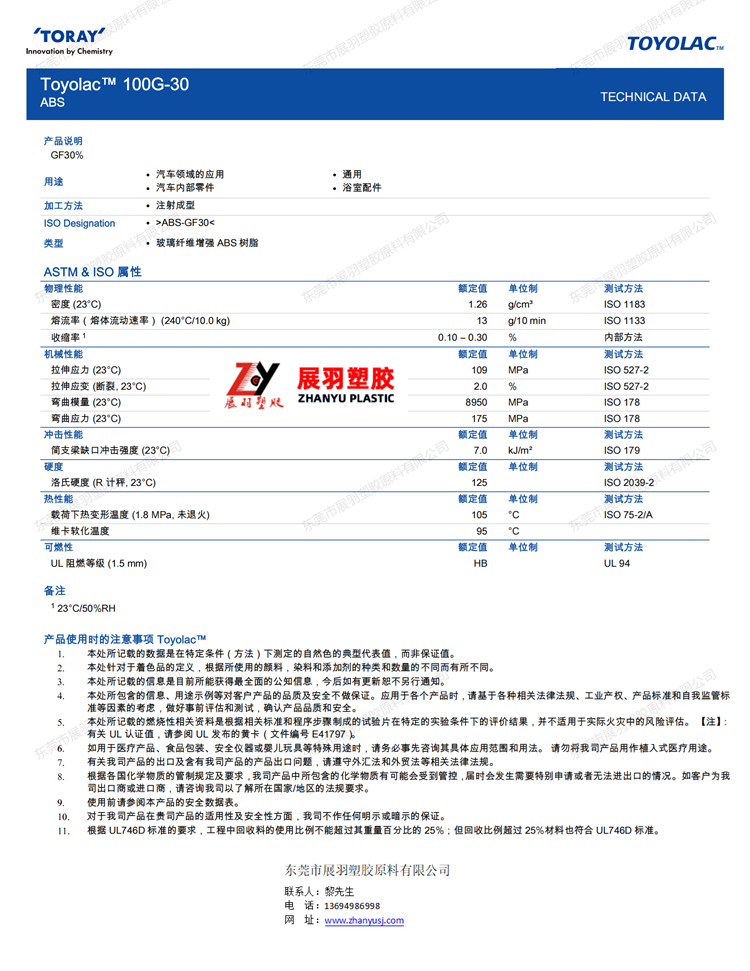 ABS 東麗 Toyolac 100G-30 玻纖增強30% 汽車內(nèi)部零件 電子電器 浴室配件