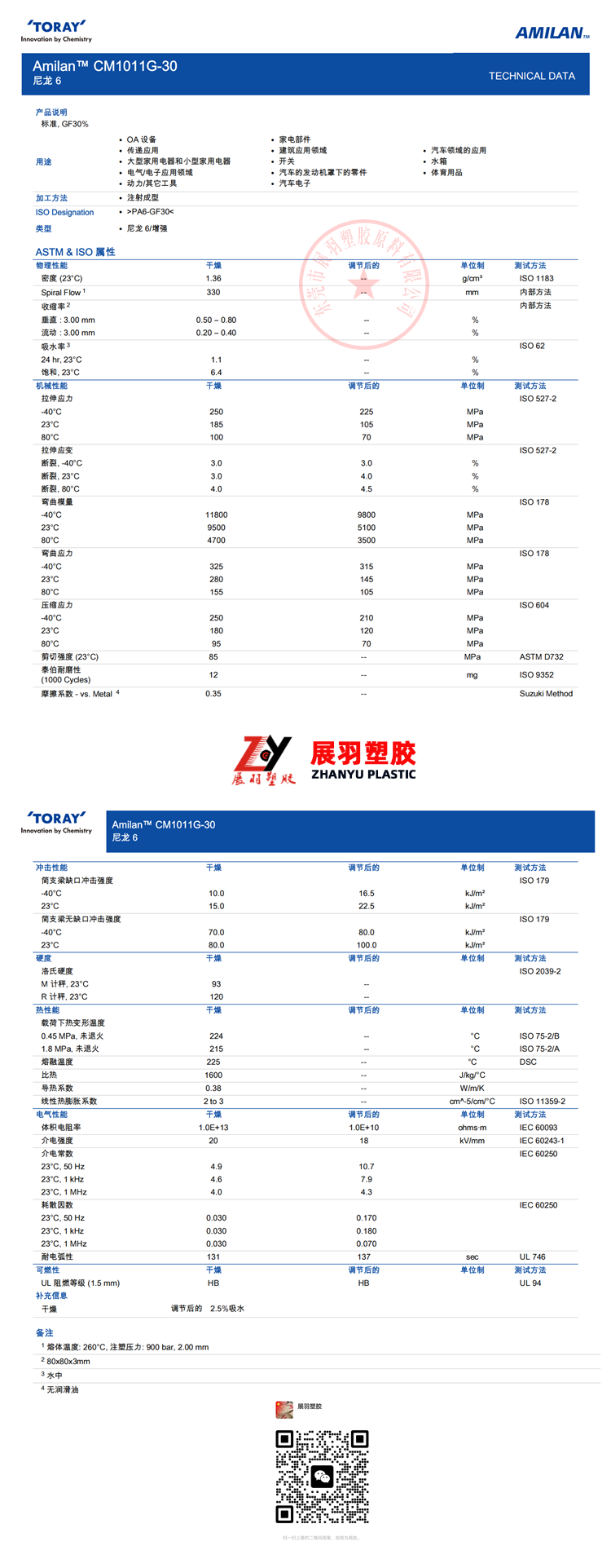 東麗 Amilan CM1011G-30(PA6-GF30)尼龍6玻纖增強30% 汽車領(lǐng)域 家用電器
