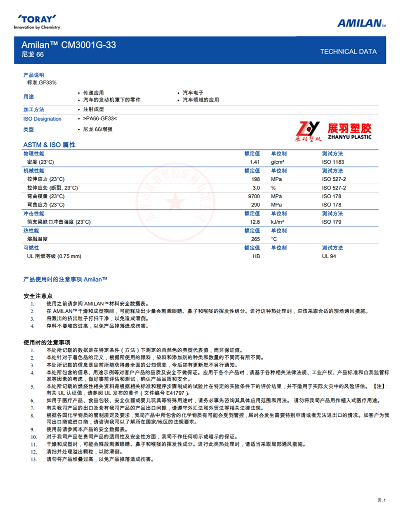PA66 東麗 Amilan CM3001G33(PA66-GF33)玻璃纖維含量33% 聚酰胺66