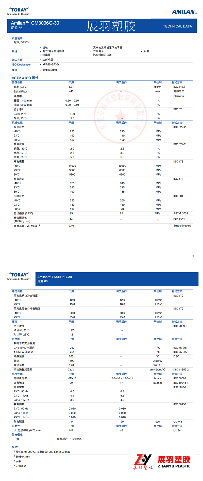 東麗 Amilan CM3006G-30 耐熱級(PA66-GF30)玻纖增強30% 聚酰胺66