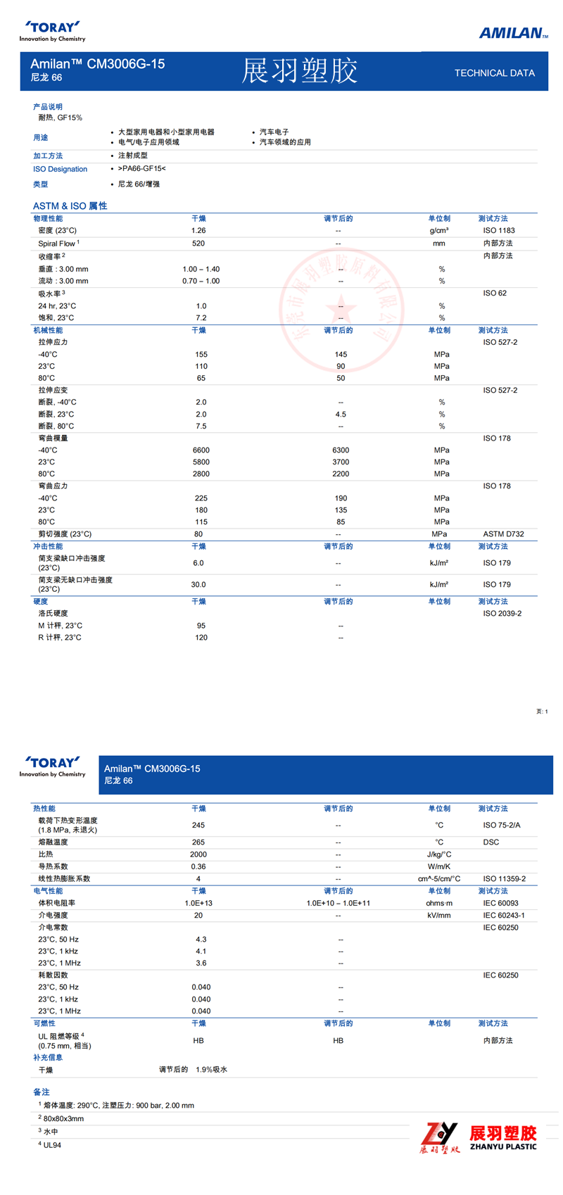 東麗 Amilan CM3006G-15(PA66-GF15 )耐熱級 聚酰胺66 玻璃纖維15%材料