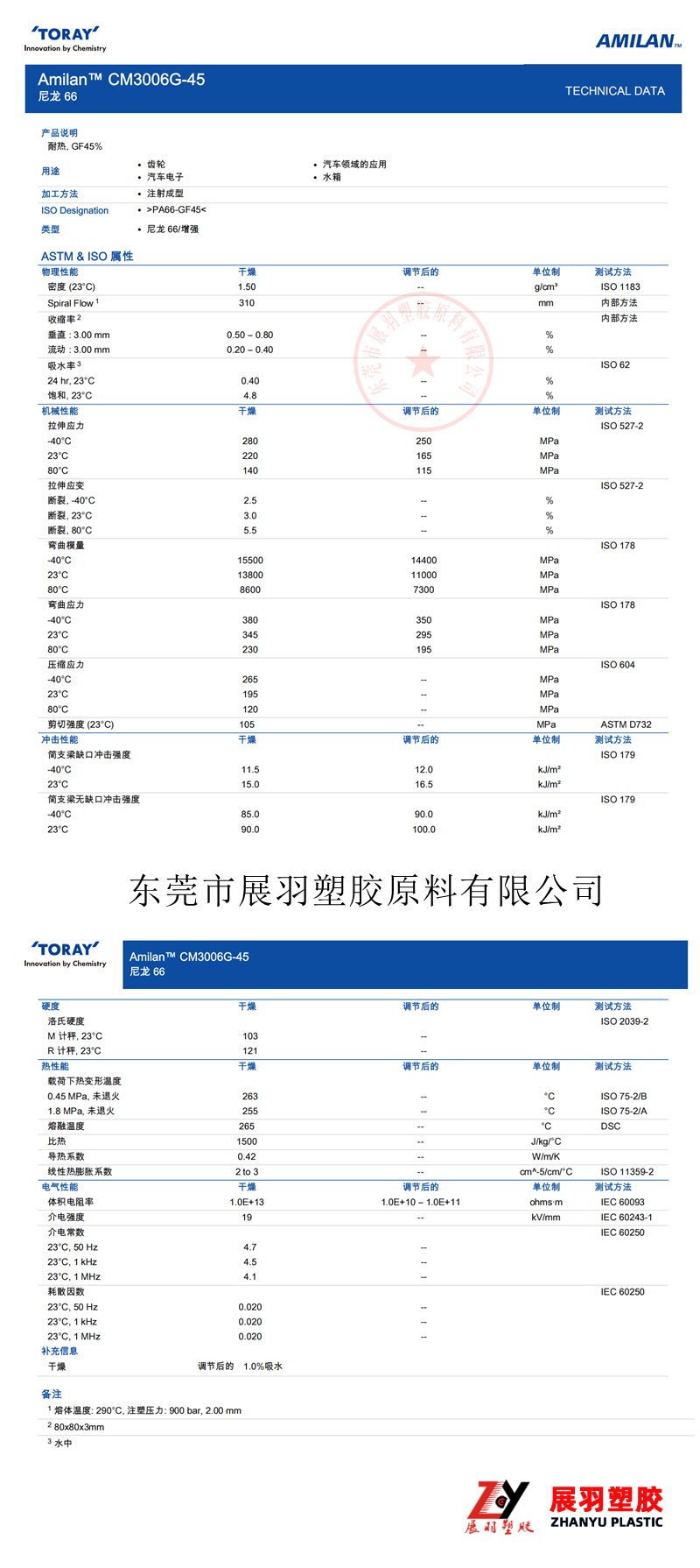 Amilan 東麗 CM3006G-45 耐熱級(jí) 玻纖增強(qiáng)45%(PA66-GF45) 聚酰胺66
