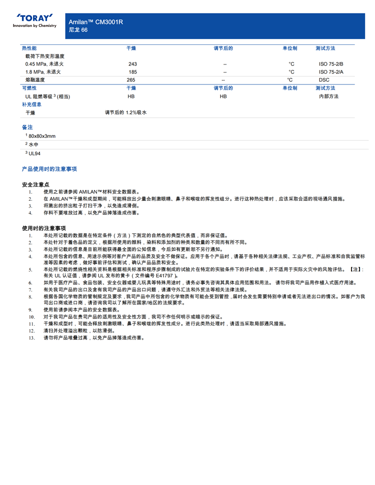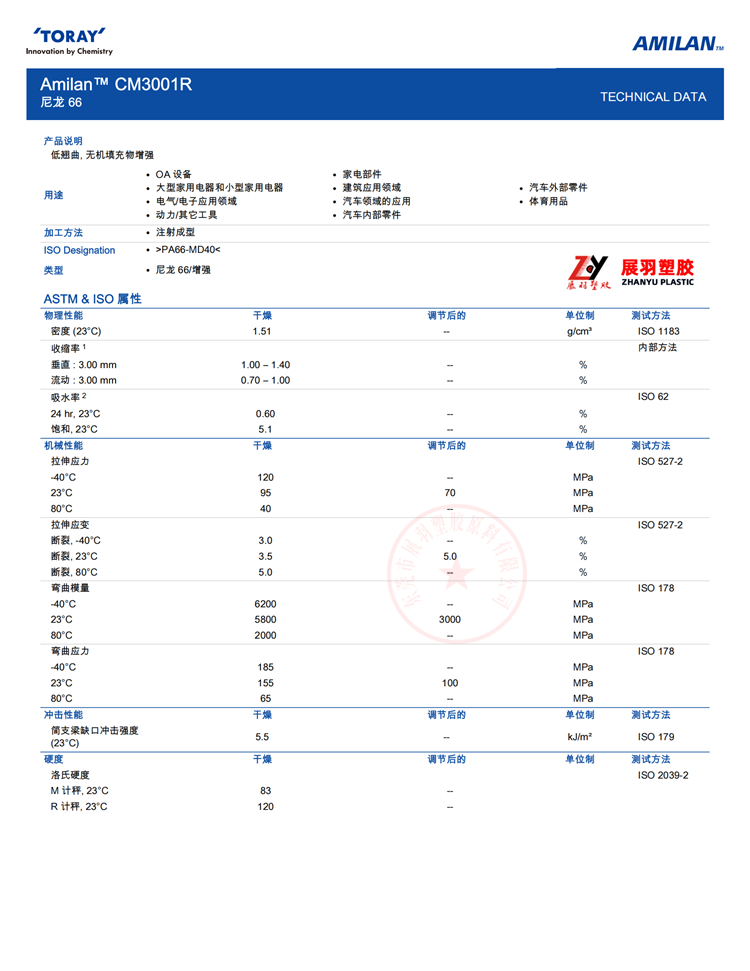 東麗 Amilan™ PA66 CM3001R >PA66-MD40<