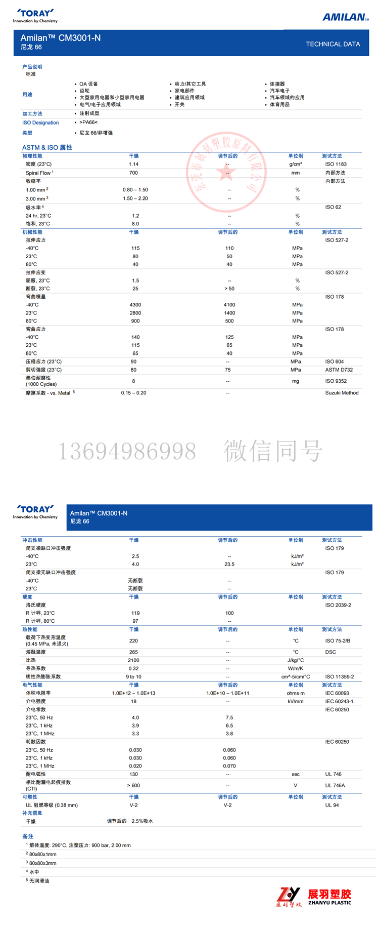 PA66 東麗 Amilan CM3001-N 尼龍66 非增強 標準級 聚酰胺66 汽車領(lǐng)域應用