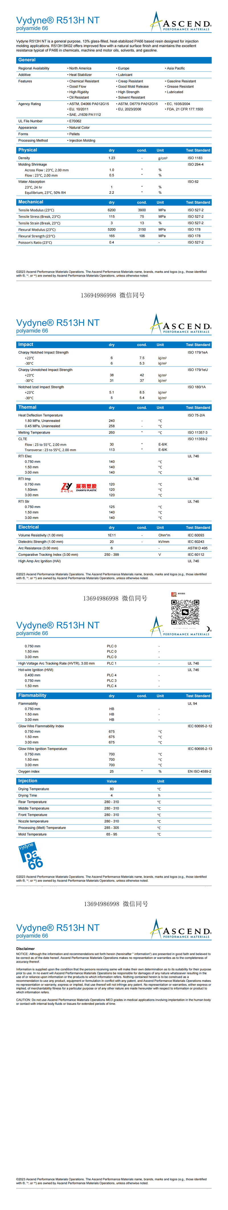 Vydyne® R513H NT(PA66-GF13)Vydyne R513H NT是一種通用型、含13%玻璃纖維、熱穩(wěn)定性的PA66基樹脂,適用于注塑成型應用。