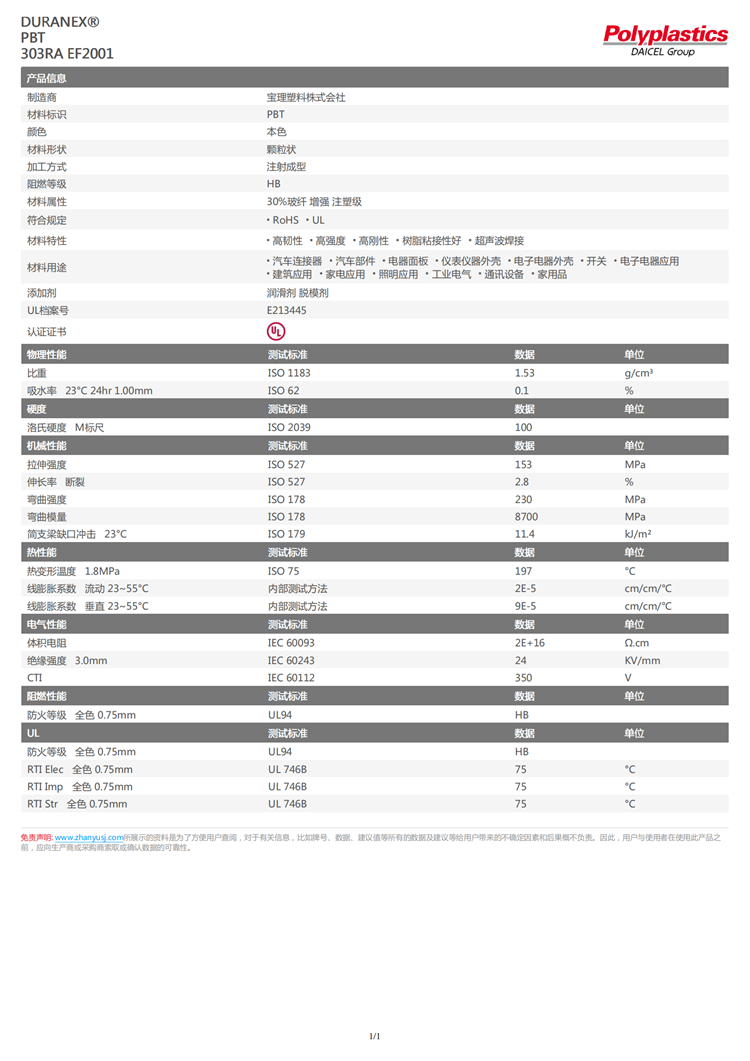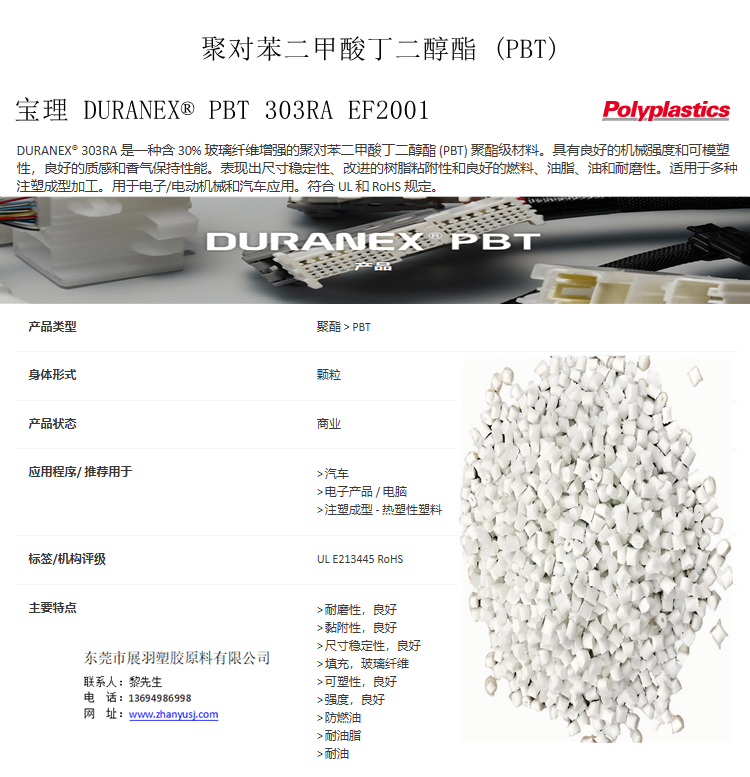 寶理 DURANEX® PBT 303RA EF2001 玻纖增強(qiáng)GF30 高韌性 聚對(duì)苯二甲酸丁二醇酯